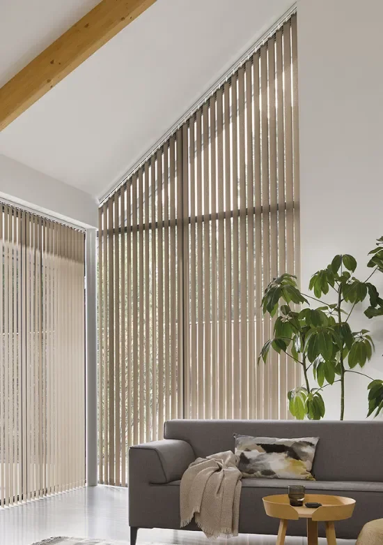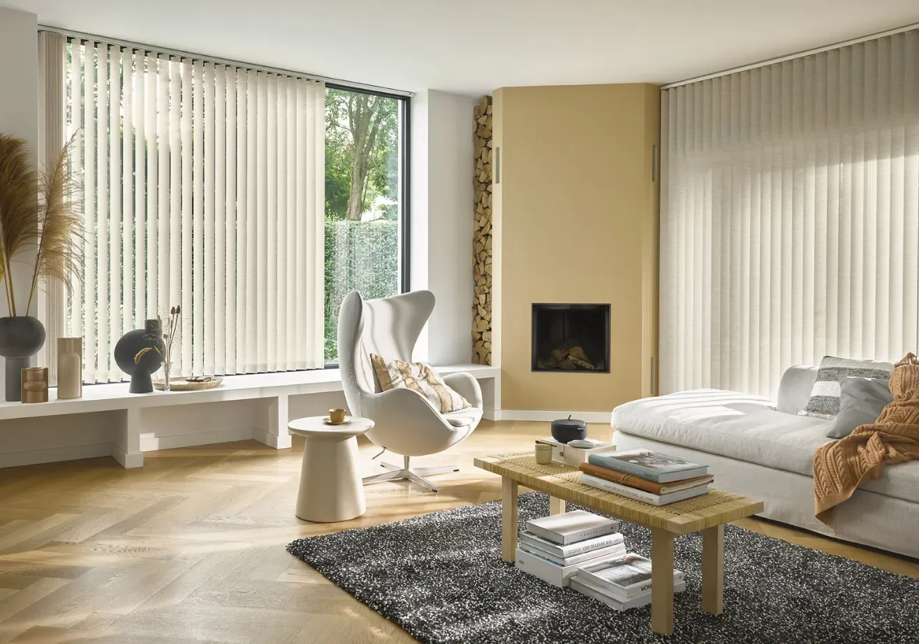 Verticale jaloezieën schuiven juist opzij en komen mooi tot hun recht bij grote raampartijen of schuifpuien. Zeker wanneer je vaak naar buiten loopt, is die zijwaartse beweging extra handig.