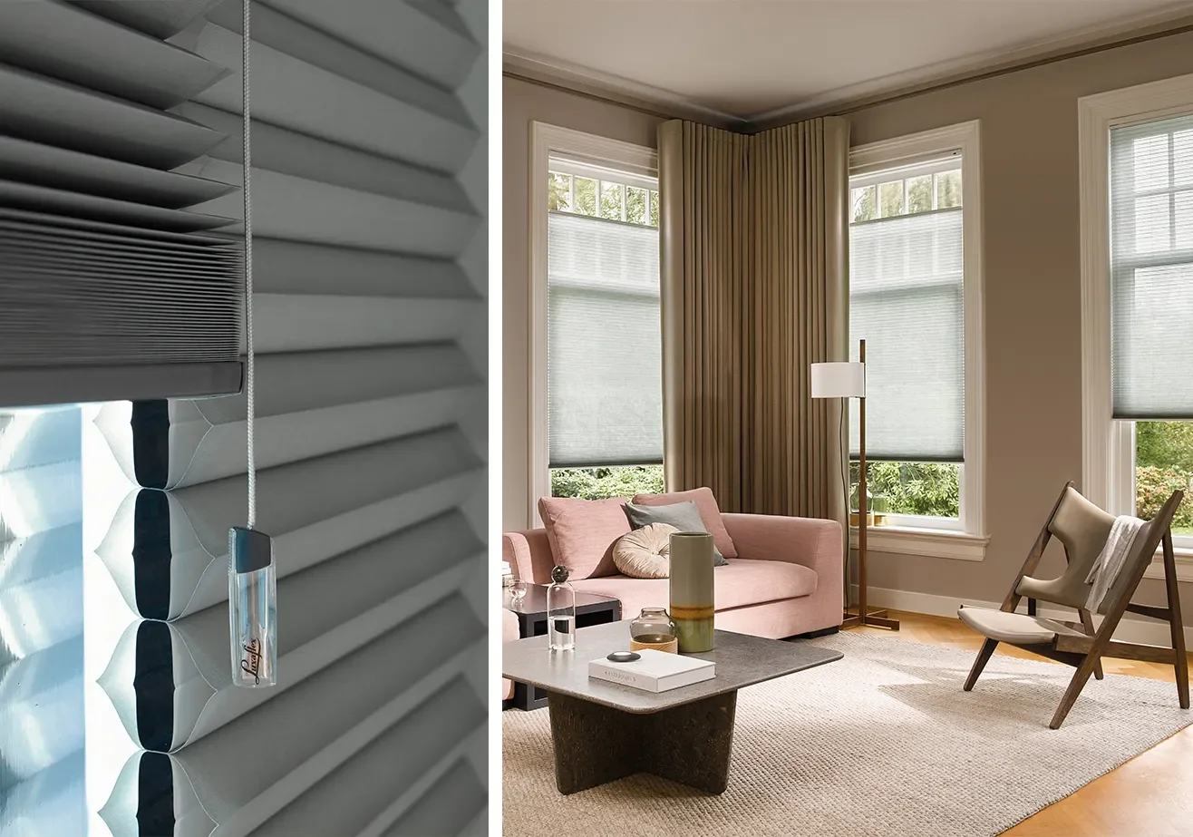 • Luxaflex Duette® Shades hebben een unieke honingraatstructuur die lucht insluit, waardoor je ramen een isolerende laag krijgen. Dit kan de warmte binnenhouden en de kou buiten.